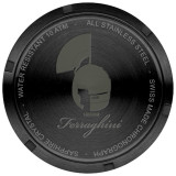 CENTURIO – Italian sportive design paired with Swiss precision. This Swiss chronograph with large housing (42mm width) has all features for sporty people: second hand, stop watch, date, speedometer, saphire glass, 100 meters waterproof (10 ATM), hypoallergenic stainless steel housing, caoutchouc wristband with stainless steel closure and pressure activation.