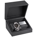 TORELLO – classic, sportive design paired with Swiss precision. This Swiss chronograph with large housing (42mm width) has all features for sporty people: second hand, stop watch, date, speedometer, saphire glass, 100 meters waterproof (10 ATM), hypoallergenic stainless steel housing, stainless steel wristband and flap closure.