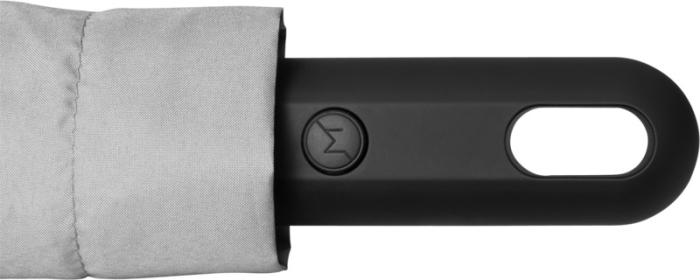 Kolmeosaline automaatselt avanev ja sulguv vihmavari. Tugev must metallist vars, klaaskiust ribid ja kummist kattega käepide tagavad vastupidavuse ja mugavuse. Valmistatud kvaliteetsest pongee-polüestrist, kaasas samas toonis vutlar. Kokkuvoldituna vaid 31 cm.