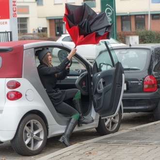 Kahekihiline vihmavari Käib kokku tavalist varjust vastupidi Läbimõõt. 120cm Värvid: must/oranž, hele ja tumesinine, hele ja tumeroheline.